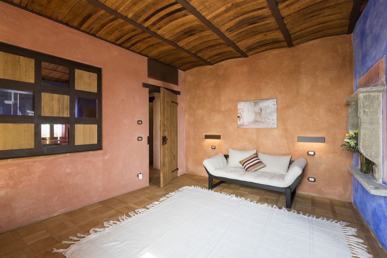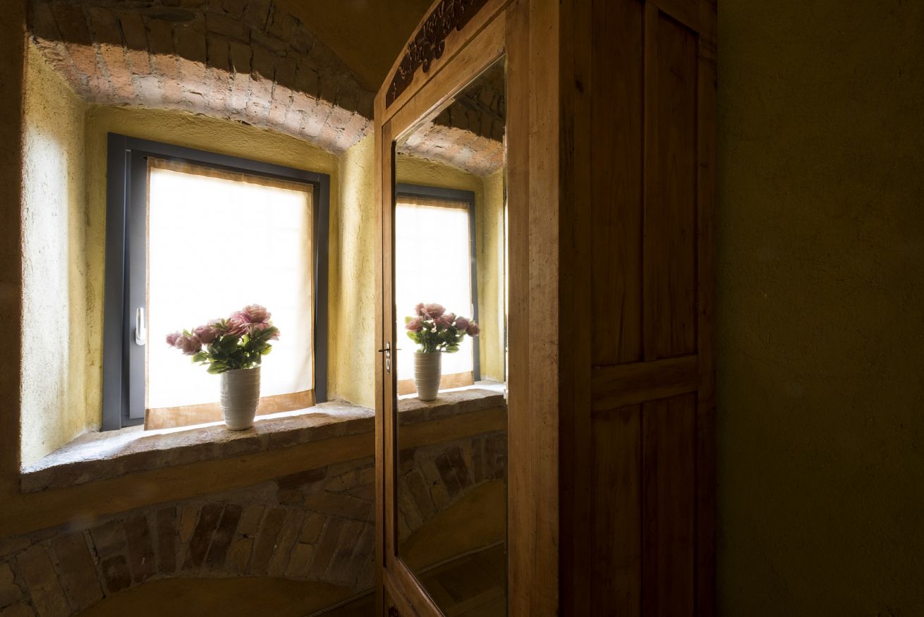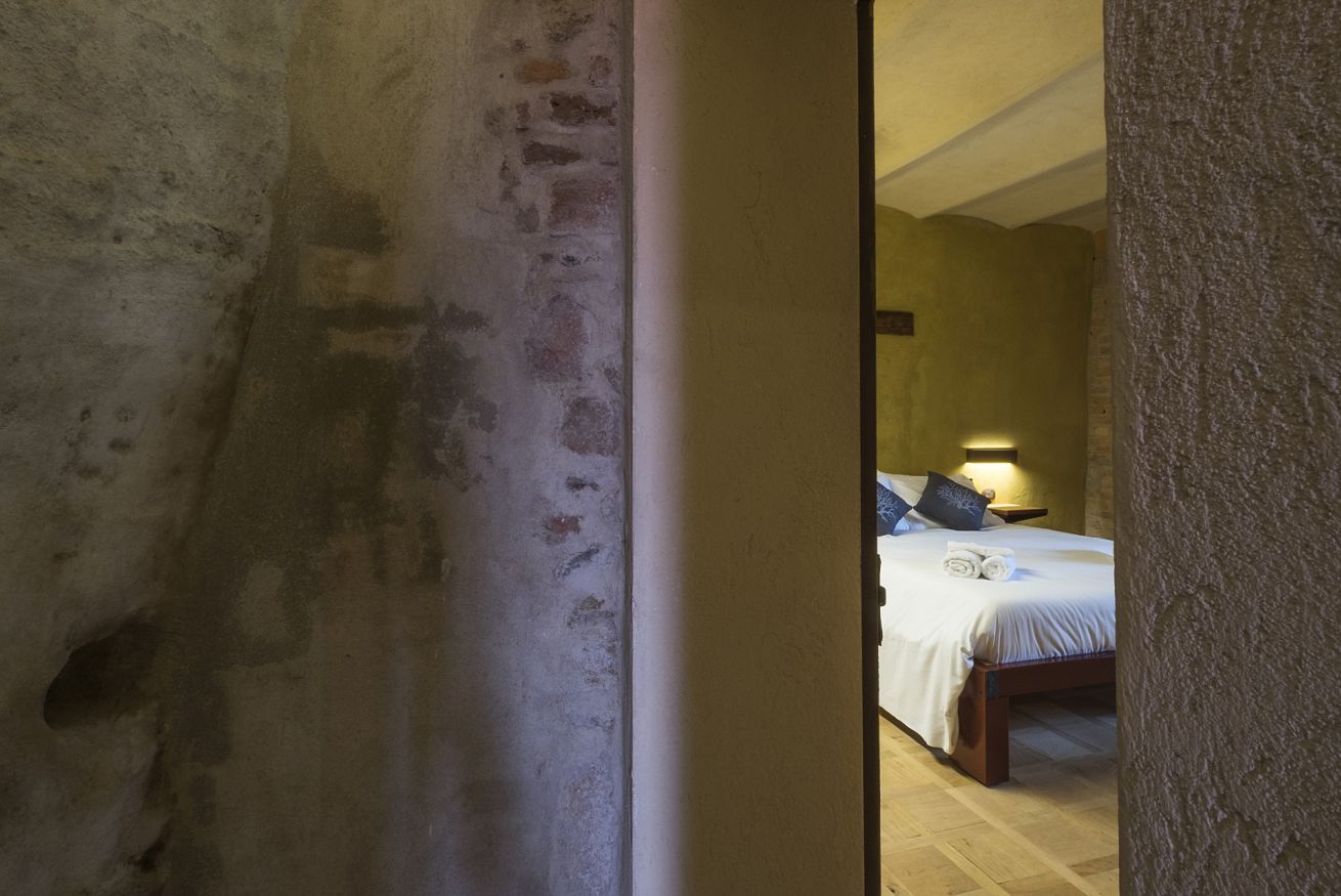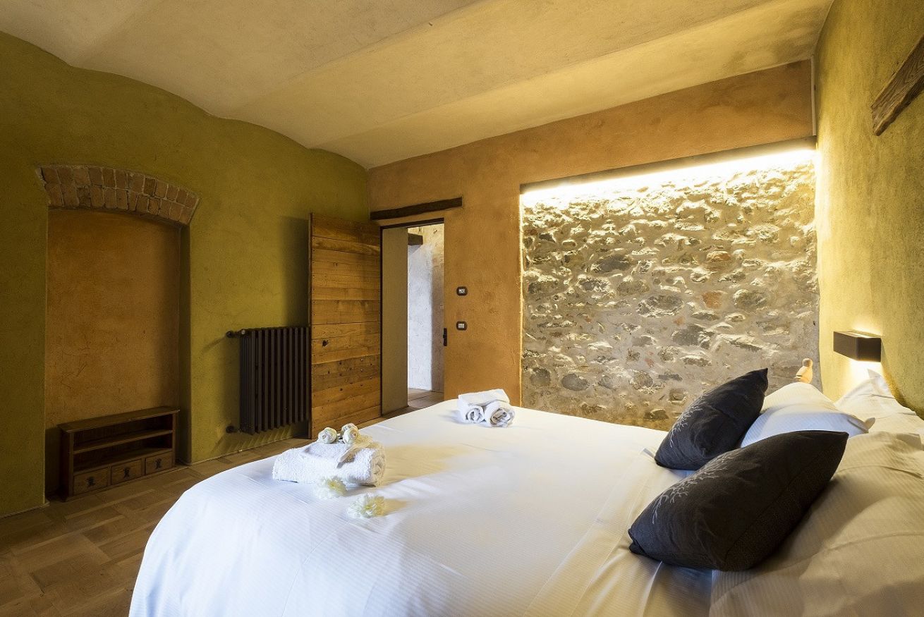 In circa 43 mq la suite offre un salotto, una camera e bagno. La camera da letto matrimoniale, con il suo soffitto a piccole volte, si affaccia sulla collina. Il soggiorno gode di una incantevole vista sul borgo, sui vigneti e sulle Alpi, e può ospitare una terza persona su divano letto singolo.